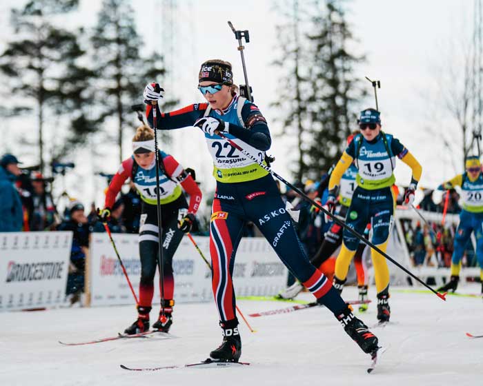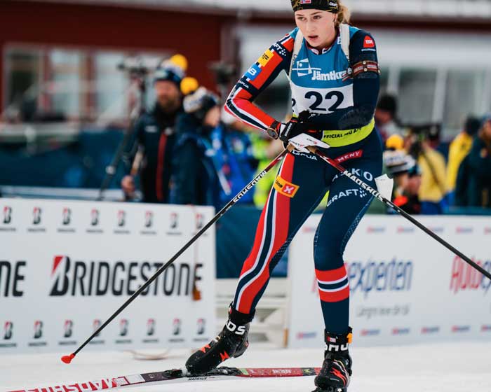 Sesongen 24/25 ble veldig bra for Stine, hun nådde til og med sitt største mål i år med å gå helt til topps i junior-VM i Østersund.